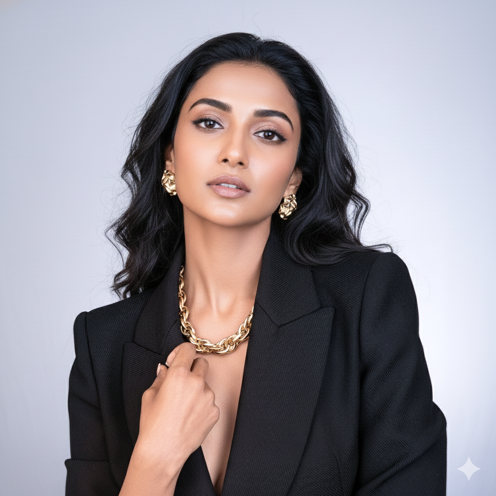 Make a powerful style statement with the Chunky Interlinked Necklace. Featuring bold, interwoven links with a rich gold-tone finish, this necklace is designed to exude confidence and modern elegance. Its structured yet fluid design sits beautifully on the neckline, making it the perfect accessory for elevated everyday looks or striking evening outfits. Pair it with blazers, dresses, or minimal silhouettes for an effortlessly chic finish.